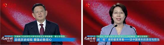 北京师范大学王炳林教授结合《中国近现代史纲要》教学,以《总结历史经验,增强必胜信心》为题,从“中国历史上的磨难及防疫斗争;中华民族从磨难中奋起的启示”两个方面,分享从磨难中奋起、化危机为转机的历史经验和智慧,坚信在党中央的坚强领导下,由改革开放以来奠定的物质基础保障和不断提升的医疗卫生水平,英雄的中国人民一定能够尽快取得抗“疫”斗争的最后胜利。