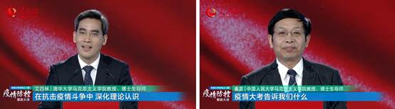 课堂上,来自清华大学、中国人民大学、北京师范大学和中央财经大学的四位顶级名师结合四门思政课的教学,对疫情防控内容进行讲解深化。