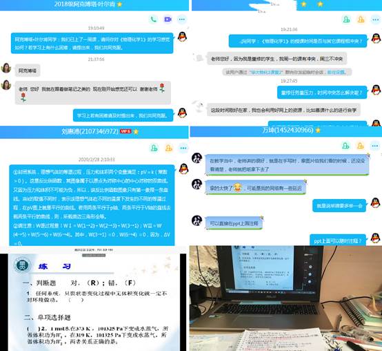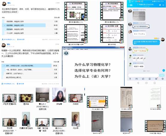 (通讯员:张栩晨)突如其来的新冠肺炎疫情,导致全国各地院校延迟春季开学返校时间,为了切实做好联防联控的工作,落实“停课不停教、停课不停学”要求,减少疫情对学生学业的影响,化学学院领导高度重视,结合本院实际,精准施策,全院师生积极配合,及时调整教学策略。《物理化学》课程组按照原定教学安排,于2月24日开始网上教学与指导,整体平稳。今天,让我们来关注《物理化学》课程组如何因地制宜实现线上教学效果最大化。