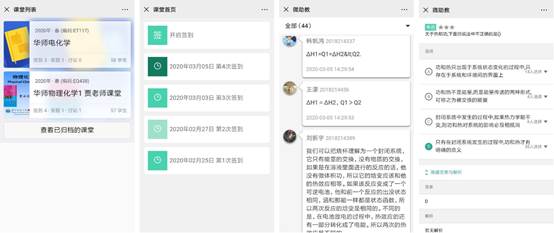 第三周开始,《物理化学》课程组的老师们正式开展线上授课。鉴于其他课程老师大都具备线上教学的经验,课程组授课教师在向同事、朋友“取经”后,根据现有设备条件和学生的实际情况,选择了适合自己的教学方式,并在课程组微信群内随时交流教学经验和体会。此外,课程组教师们还加入“物理化学教学之家”微信群,和全国同行交流教学心得,借鉴其他高校先进经验,相互学习,共同进步。