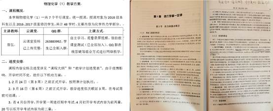 由于上学期没有发放《物理化学》教材,为解决学生居家学习没有教材的问题,课程组老师特别安排一名高年级学生(携带教材回家复习准备考研)拍照制成电子版,再分享给各位师生,同时老师们也把手头上的其他参考书分享给同学们,保证同学们在家也能享有足够的教学资源。