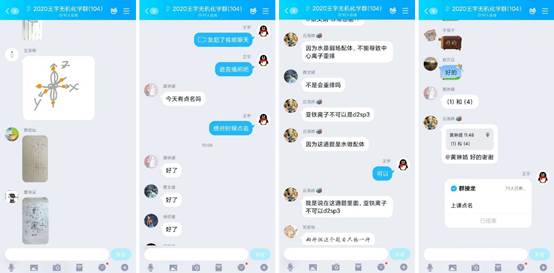 “同学们能够准时到课,认真听讲,积极讨论!”《无机化学》课程教师王莉在线上上课后感叹道。早在网上开学前,王老师即为同学们提供电子版教材、课件和慕课资源等,督促同学们做好课前预习。线上授课时,王老师运用“QQ群视频分享屏幕”的方式,在讲授知识同时采用“集体文字回答”和“个别同学单独语音点答”两种形式组织同学们开展讨论。课后,王老师在课程QQ群中进行答疑,并在周五安排线上集中答疑。非常时期,大部分同学们能积极参与课堂,认真学习思考,整体效果不错。