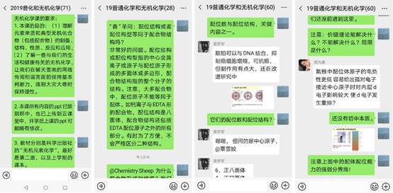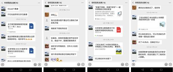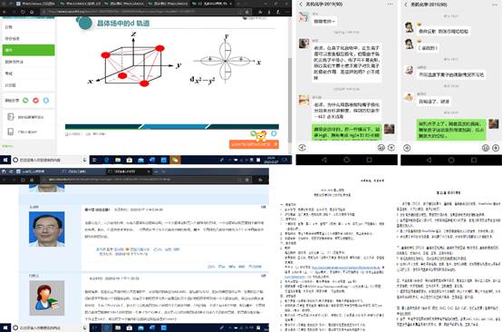 为保证我院《无机化学》课程组网上教学工作顺利进行,《无机化学》课程组授课教师们根据课程教学的实际情况,多次利用课程组微信群、QQ群等线上平台积极学习相关文件精神,同时在群内进行备课研讨、交流教学素材等,集思广益做好“停课不停教不停学”工作。