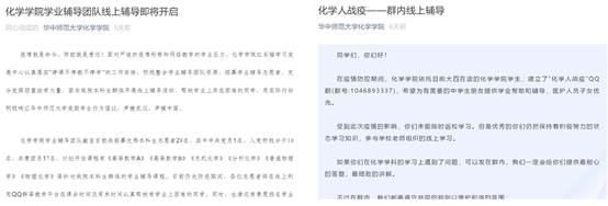 隔离病毒不隔离爱,化学学院红石榴学习发展中心希望通过我院学业辅导团队和2016级化学人战“疫”志愿者团队开展本科生学业辅导和中学生化学辅导,发挥华师化学人的力量,尽心尽力帮扶有困难的同学,在线上营造良好的学习氛围。后续我们将持续开展线上学业辅导活动,同时,我们希望借此辅导平台帮助到一线医护人员的子女,同心战“疫”,共克时艰,打赢这场疫情防控阻击战。