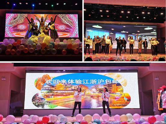 第一篇章——铜锌向前。首先是1904班同学带来的小品《我要上元旦》,幽默的情节激起同学们精心准备节目的共鸣。接着的舞蹈《阿拉布拉克》由哈萨克族同学倾情演绎,浓浓的民族风情,呈现出别样的风采。随后,1907班的《高铁环游记》别出心裁地将华中师范大学比做高铁,带我们领略了全国各地的不同饮食文化和自然风光。