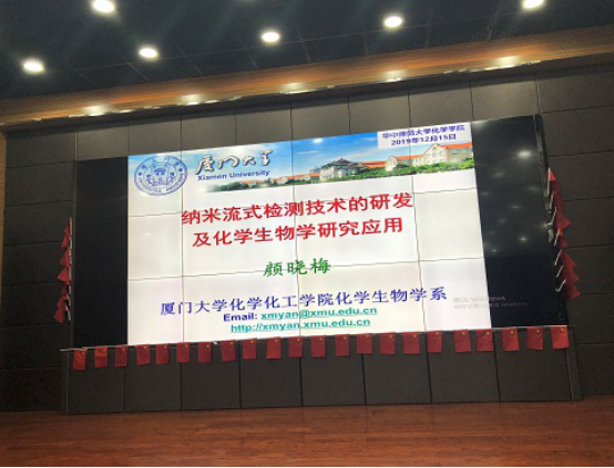 新闻中心消息 通讯员 张杨12月15日晚,化学学院2019级全体非公费师范专业本科生以及各年级报名参与的本研学生于L823报告厅,参加了化学生物学课程之学术前沿系列教学活动——《纳米流式检测技术的研发及其化学生物学应用》学术讲座。本次讲座的主讲人为厦门大学的颜晓梅教授。到场的嘉宾有学院党委副书记徐芬,教授代表杨光富、钟鸿英、原弘、龚静鸣和李伟国,辅导员孙煜林。本次活动由化学学院红石榴学习发展中心承办并由冯玲玲教授主持。