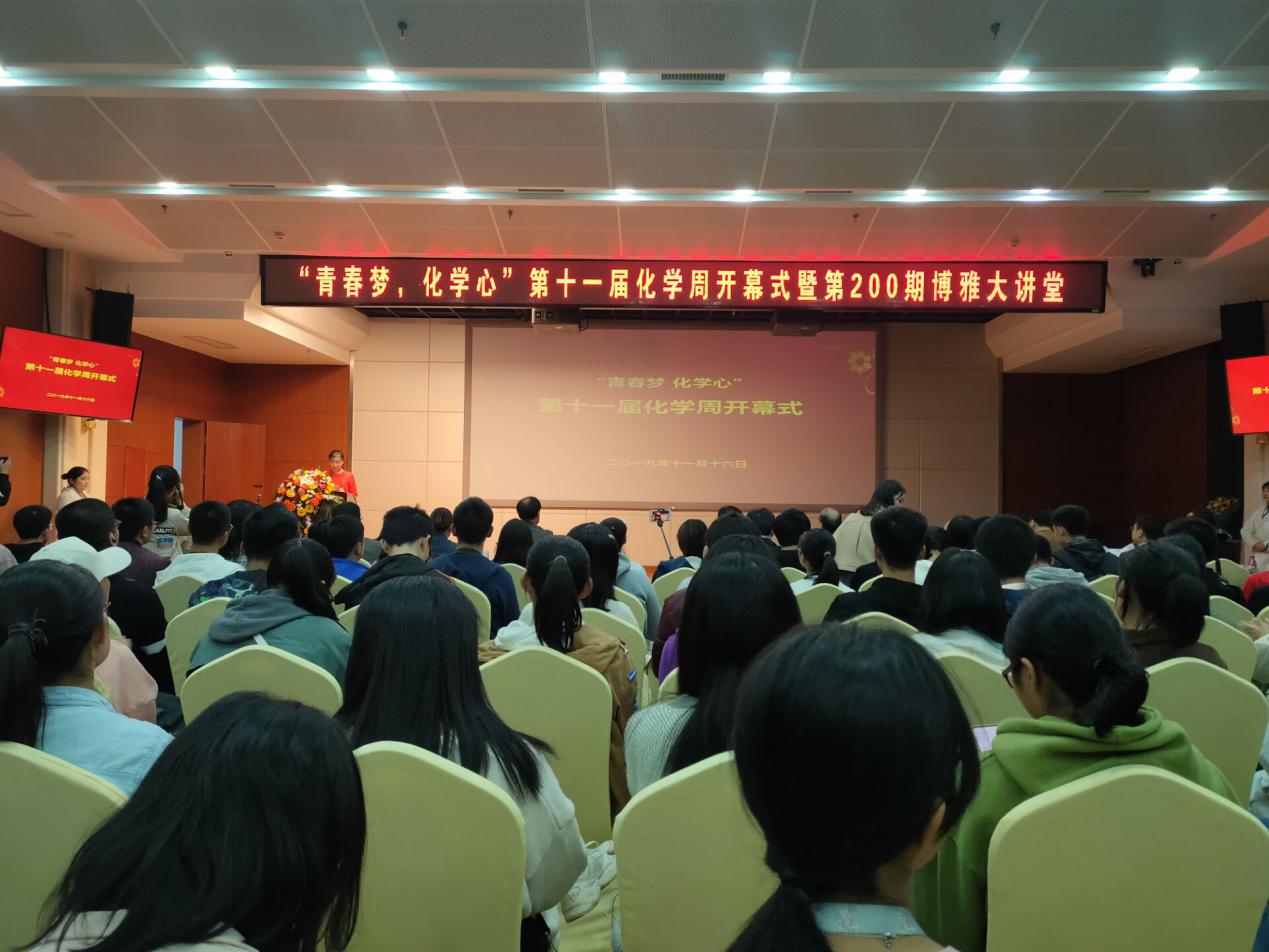 第200期博雅大讲堂正式开始,庞代文教授以“化学成就人生梦想”为主题,生动形象地讲述了化学中所蕴含的人生哲理。他以“类聚效应和反类聚效应”为例,强调了培养学生感性认识与理性思维的重要性,同时他谈到化学的学习在培养学生的协调、应变能力以及洞察力等方面都有显著的作用,讲解过程中他结合自身教学的经历和优秀学生的科研事迹,督促学生打好化学学习的扎实基础,鼓励学生勤于思考,培养严密的逻辑思维。