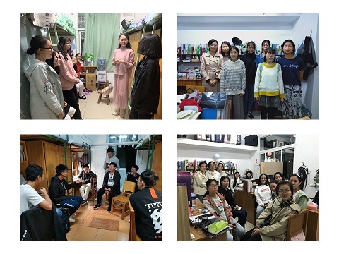 根据前期安排,各党员与积极分子先加入了新生的寝室群进行了线上的交流,然后又深入到各寝室进行面对面的集体谈话,主要针对大学适应性问题和后续的四年规划、职业发展等进行了交流。在后期的工作中,各党员与入党积极分子还会进一步了解各新生的诉求,配合辅导员完成相应工作,并且在以后2019级学生进行入党积极分子推选与培养考察中进行考评。