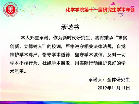 最后,由2019级博士研究生李东洋带领全体与会学生进行了承诺书的宣读,在庄严的承诺声中,本届学术年会开幕式顺利落下了帷幕,后续活动拉开序幕。