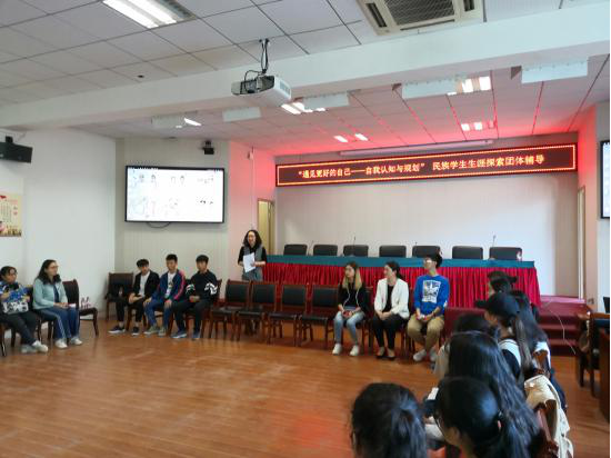 新闻中心消息 通讯员 蔡梦怡 李毅11月3日下午华中师范大学第四届“生涯宣传周”之遇见更好的自己—自我认知与规划学生生涯探索团体辅导在大学生活动中心403顺利举行。此次团体辅导由华中师范大学招生与就业工作处主办,华中师范大学化学学院红石榴提升组承办,由来自武汉理工大学学生工作部就业指导中心副教授魏超主讲。华中师范大学招生与就业处副处长郎东鹏,招生与就业处就业指导教师张凡,化学学院党委副书记徐芬、团委书记马莹、19级辅导员武双欣、张栩晨出席了本次活动。来自不同学院的37名民族学生参与了此次活动。