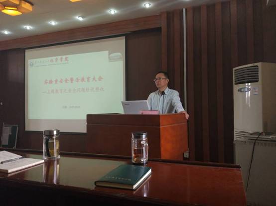为贯彻落实“不忘初心,牢记使命”主题教育,认真落实“五领”要求,同时响应“保军运”的号召,10月11日下午,化学学院召开了以“安全问题检视整改”为主题的安全教育大会。学院全体教职工参加了此次会议,肖文精院长主持会议,学院党委书记邱宝国同志对近期化学学院安全事宜进行了部署,全院教职工共同学习实验室安全知识。