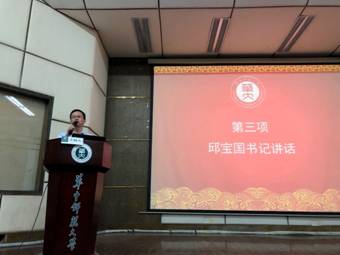 刘盛华副院长向新生提出了注意事项,要求和希望。邱宝国书记着重强调了实验室安全问题,针对实验室的安全管理工作,邱书记提出了五个必须:必须进行风险评估,必须采取规范防范措施,必须正确使用通风橱,必须穿戴防护装置,必须熟悉应急处理方法。