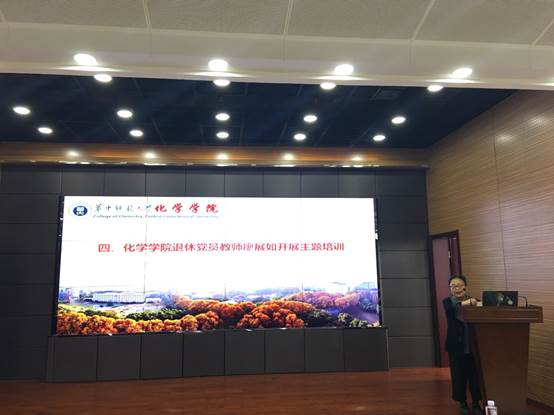 大会第四项,由退休党员教师廖展如发表讲话。廖展如老师以“在党旗的指引下成长——不忘初心,牢记使命”为主题,从她自身经历出发,给我们上了一堂内容丰富、发人深省的主题培训课。廖老师这一生无论自己的身份如何变化,时代潮流如何变化,一直不忘入党初心,牢记党员身份。聆听先生之言,与真理为伴,廖老师一生踏踏实实做教学,求真务实搞科研,科研路上应该既要接受成功,也要宽容失败。全体学员也被她对中国共产党坚定不变的信仰深深地感动着和感染着。