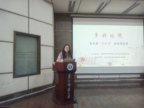 新闻中心消息 记者 蒋帆 蔡梦怡3月16日上午,化学学院第五届“佳洁室”风采展在九号楼一楼报告厅举行。本次活动旨在让学生树立积极健康的生活观念、展示优秀寝室的闪光点,建设更美好和谐的“多彩化院”。本次活动共青团华中师范大学化学学院委员会主办化学学院学生会社区工作部承办。出席本次活动的嘉宾有化学学院党委副书记徐芬化学学院团委书记安晓蕾化学学院团委副书记马莹2018级辅导员孙煜林和兼职辅导员刘鹏、李鑫、刘晓梅。