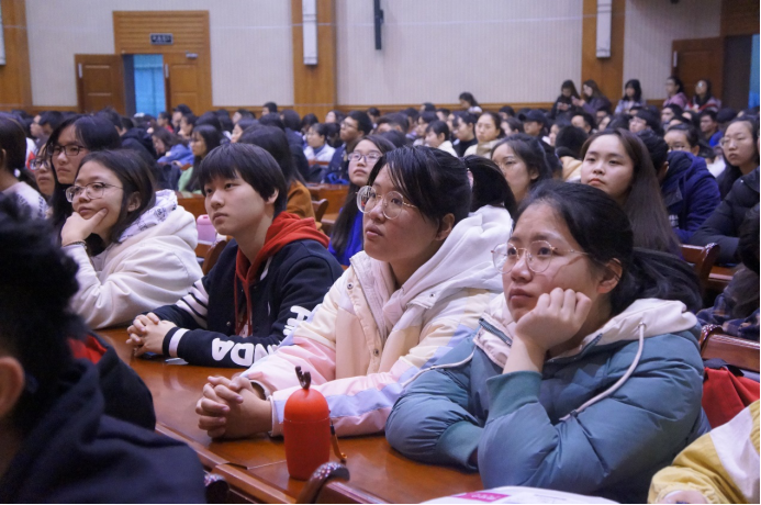 随后,钟教授和大家一起分享了五位女性向世界所诠释的美的内涵,无论是从中国百草园中走来的屠呦呦、罹患癌症却坚持在科研教学第一线的弗朗西丝∙阿诺德,还是荧屏上的奥黛丽∙赫本、惊艳世界的沙漠珍珠华莉丝∙迪里以及我校第十八届研究生支教团成员李卫丹,她们热爱和平,志愿奉献;她们在艰难时刻仍然秉持科学理想,不断探索创新;她们谦逊、慈爱、庄重、专注,还有不被苦难所击倒的坚强和勇气。钟教授说:“每一次看沙漠之花,都忍不住眼泪。每一个比华莉丝∙迪里幸运的人都应该重新审视自己的生活。”