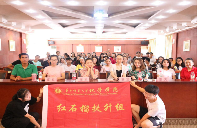 化学学院红石榴提升组 9月22日上午,华中师范大学化学学院2018级“团民族心,圆石榴梦”红石榴中秋交流会在逸夫化学楼五楼会议室举行。化学学院党委副书记徐芬、武汉科技大学少数民族专职辅导员玛依努尔、化学学院2016级辅导员聂敏、化学学院2018级辅导员肉孜、化学学院2017级兼职辅导员刘晓梅、化学学院2018级兼职辅导员李鑫出席了本次会议。化学学院红石榴项目部分成员及化学学院2018级民族新生参加会议。本次会议由化学学院红石榴项目负责人徐浬主持。