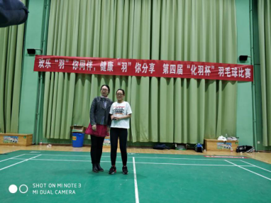 经过几轮的精彩角逐,最终本科生 “羽众不同” 代表队斩获冠军,郭军教授课题组颜值队获亚军,张礼知教授课题组 “光铁氮plus” 队获季军。颁奖典礼后获奖选手纷纷与化学院徐芬书记合影留恋。至此,化学学院第四届 “化羽杯”羽毛球赛圆满落幕。