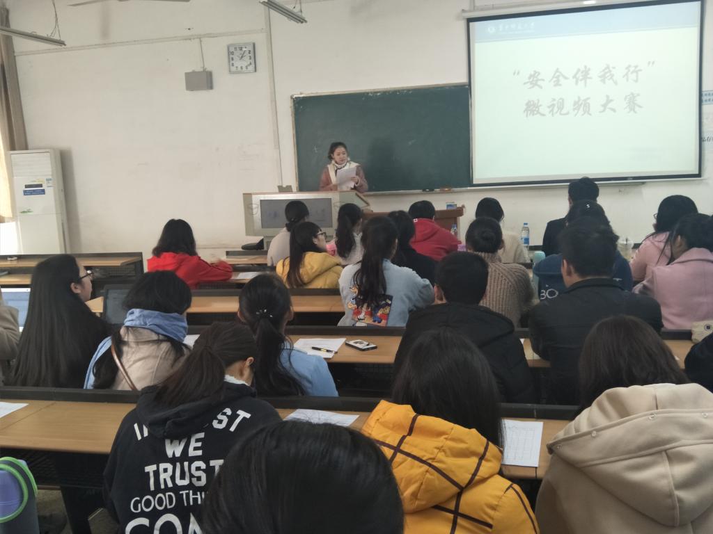 新闻中心消息 通讯员 吴来英 马金怡 朱寒梅 11月25日,“安全伴我行”微视频大赛在8202教室如期举行。本次比赛邀请到化学学院15级辅导员马莹、外国语学院团委学生会权益部部长李欣桐、物理科学与技术学院团委学生会权益部部长王嵚洋、化学学院团委学生会宣传中心主任游晓宇以及化学学院团委学生会权益部副部长梁涵担任评委,比赛由化学学院团委学生会权益部部长李佳瑶主持。本次比赛旨在普及安全知识,增强学生的安全防范意识。