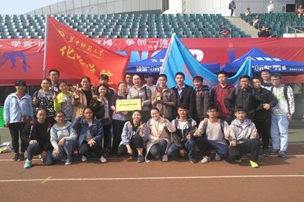 此次运动会学院高度重视,师生全面动员,各项目参赛队员提前一个多月训练准备,做到了学生组所有项目报名全覆盖,个人项目、集体项目、团体广播操项目共组织了381名学生参与。共取得新生广播操比赛二等奖,足球射门第二名、仰卧起坐第三名、引体向上第三名、混合毽球第五名、跳绳接力第五名、猪八戒背媳妇第六名、单腿火车跑第八名、男子4×100接力第四名、女子4×100接力第六名、后抛实心球第六名、立定跳远第六名、小马过河第六名的好成绩;个人赛也取得佳绩,男子5000米吴伦赢第四名、王彬任第十名、李世林第十七名,女子800米陈慧琳第八名。2017级学生会主席董奕说道:“所有运动员都是化学学院的骄傲,我们为你们喝彩。”