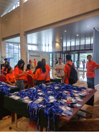 为了保证本次会议如期顺利进行,我校学生积极投身于会议志愿者工作中。一百多名学子身穿橙色志愿服,从早上七点到晚上七点,热情耐心地为广大参会人员提供全天候的帮助。他们分布在各个部门,从整理材料、布置会场到发水发饭、送伞指路,处处都有着橙色的身影努力着。而更多的同学属于机动组,哪里需要去哪里,以整个会议为中心提供自己力所能及的一切帮助,努力让会议的每个细节都趋于完美,努力让每个参会人员都宾至如归。这些志愿者的行动弘扬和传承青年志愿者的精神,他们通过自己辛勤的劳动为本次会议的圆满落幕贡献了自己的力量。