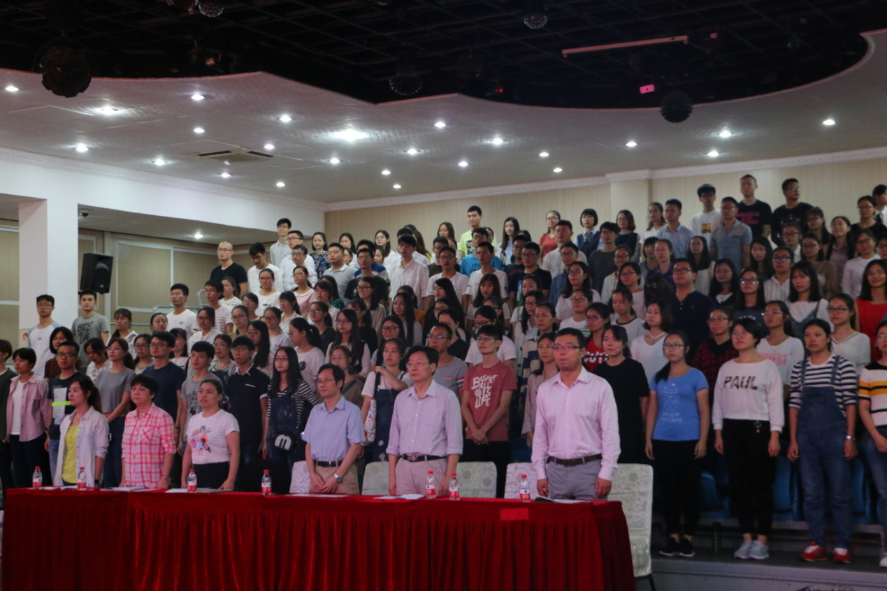 新闻中心消息 通讯员 陆文婷 九月四日上午十点,化学学院2017级研究生开学典礼在大学生活动中心五楼隆举行。出席本次活动的有华中师范大学化学学院党委书记杨军/副院长刘盛华教授、青年教师郝格非教授、研究生秘书李学慧老师、研究生辅导员于翔老师等。本次典礼由化学学院研究生辅导员刘祖明主持。