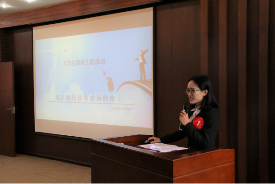 本次决赛分为选手展示、评委点评与颁奖三大环节。在主持人开场词之后,决赛正式开幕。13位选手轮番上台展示。比赛中,选手们将自己的生涯规划制作成幻灯片,配合现场讲解放映,各具特色的展示赢得了现场评委与观众的阵阵掌声。其中,来自心理学院的十三号选手陈春雨,运用了各种心理学的分析工具,对自己做了全面的分析,以此为基础制定科学的计划。十二号选手秦紫婷的职业分析,则以自己的化学专业为依托,她从武汉“百万大学生留汉计划”和家乡河北雄安新区设立等政策出发,联系现实,深入分析由此带来的发展机遇,得到了各位评委老师的认可。此外,来自数统学院的选手张凤婷,巧妙运用解方程,求极限的方法来说明自己的职业规划,收获现场热烈掌声。