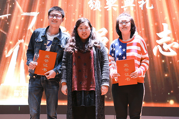 本次晚会的颁奖对象为由化院全体师生投票选出的四类(共10名)优秀个人与两个优秀团体。在介绍视频播放之后,全面发展类优秀个人曹诗玉、彭天宇、夏心茹上台领奖。作为2014级英才班班长的曹诗玉在大学期间获得涵盖科研、学业、活动等各方面共29个奖项,成绩优异,并成功保研。学院社区工作部副部长彭天宇在学习与工作方面都名列前茅,曾获得“博雅金桂奖学金”和“校级三好学生”称号。2016级的夏心如不仅在CET4获得笔试655分口试B+的成绩,还曾原创《年华》、《终于知道》等歌曲。