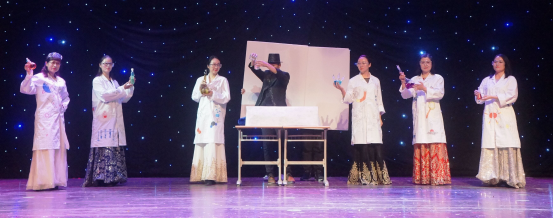 化学学院的“魔幻化学服装秀”表演,在魔术师和女老师的共同展现了学院风采和专业特色,用化学试剂绚丽的色彩庆贺“三八妇女节”。最终,通过魔幻的服装秀表演,化学学院获得了本次活动的“最佳表演奖”。