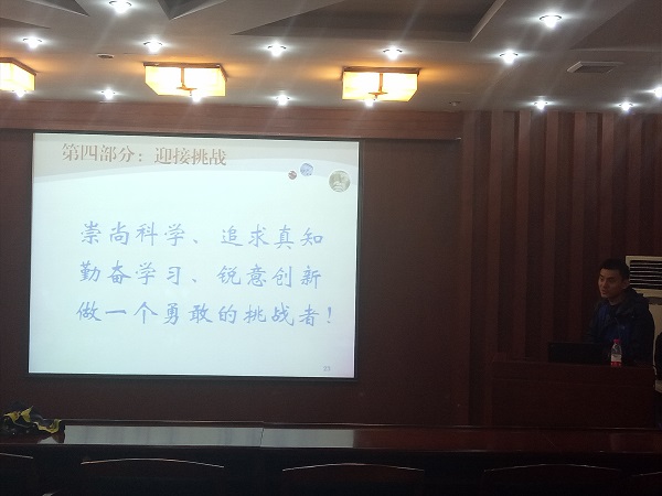 讲座最后,屏幕上跃出“崇尚科学,追求真知,勤奋学习,锐意创新,做一个勇敢的挑战者!”的醒目标语。“抛开得奖不谈,学习制作申报书以及科学探索的过程也十分重要,它有助于同学们适应今后的学习生活,对学生以后的发展也会有帮助。”黄伟副教授强调道。