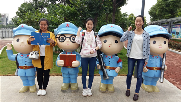 公园内设置的雕塑一改传统风格,更具创新性。“四渡赤水”被生动地描绘在地上;社会主义核心价值观成了美丽的“万花筒”;庄严的“宣誓台”经艺术处理更显别致;而“萌系”小红军更是让同学们都忍不住要与之合影留念。