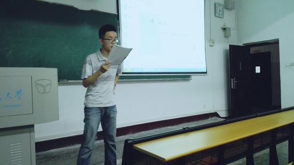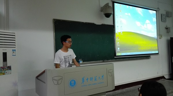 之后,便是邓阳洋上台向同学们讲述他是如何走向人民教师之路的,为了更好的、直观的教授上课的技巧,邓阳洋分别让1405班的吴楠同学及2013级的陈悦同学分别讲授高中生物“蛋白质”这一节的内容。之后他从这两位同学的讲课表现、板书、PPT等方面说明了一个完整的课堂应当包括的内容以及授课时应当注意的方面。除此之外,他还分享了在实际教学中可以采取的一些新奇的方法,让班上有志成为一名教师的同学更好的理解教师这一职业应当做的事情。