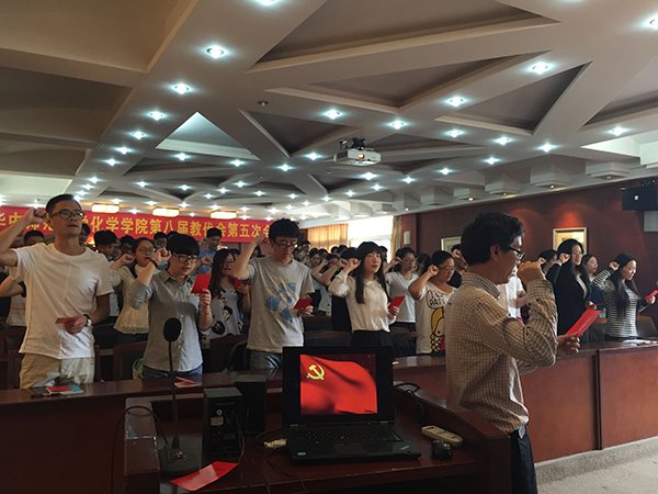 新闻中心消息 通讯员 张艳 5月4日,时值五四运动97周年之际,化学学院在化学楼五楼报告厅举行了学生党员入党宣誓仪式。旨在引导新党员缅怀革命先烈,爱党信党,继承和发扬党的优良传统,为党的事业奋斗终身。出席本次会议的有化学学院党委书记杨军、党委副书记范重庆以及学生党员68人。会议由院党委副书记范重庆主持。
