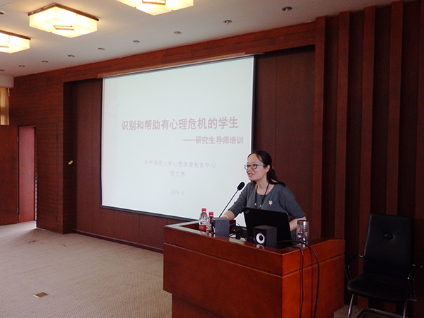 新闻中心消息 通讯员 张艳4月22日下午三点,由我校心理健康教育中心组织的“识别和帮助有心理危机的学生”研究生导师专题培训会在化学楼五楼报告厅举行。受邀担任此次主讲的是校心理健康教育中心的老师段文婷。化学学院全体教职工均参与了此次培训,会议由化学学院党委书记杨军主持。