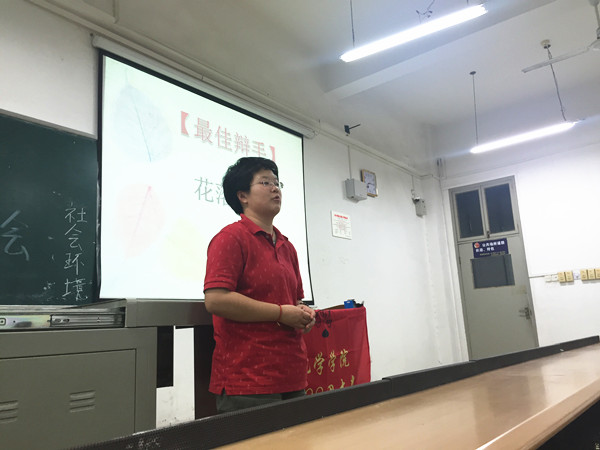 最后辅导员马莹、学生班主任李玉姨和班长张熠为本次辩论赛的最佳辩手陆姣姣和贾宇同学颁奖。