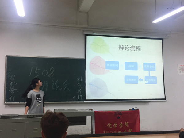 新闻中心消息 通讯员 王佳晔4月15日19:00,化学学院1508班于八号楼8203教室举办了特色团日活动。本次活动旨在号召同学们在学习的同时也要关心时事,心系社会。活动围绕“望京798和颐酒店女生受袭事件中责任更大的是罪犯本身还是冷漠的社会环境”这一主题,以自由辩论的形式展开。另外2015级辅导员马莹和1508班学生班主任李玉姨作为特邀嘉宾出席了本场辩论会。