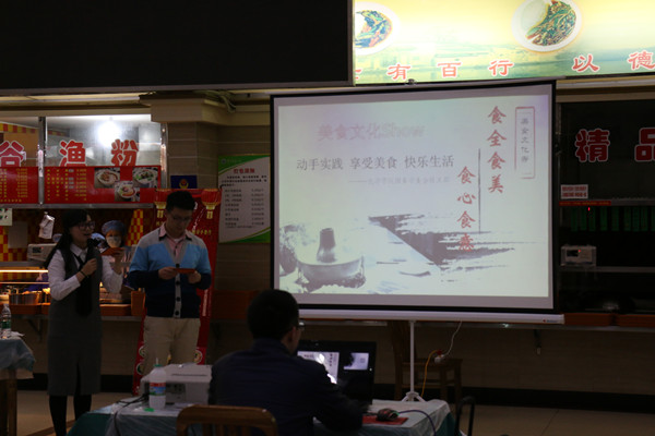 新闻中心消息 记者 杨岚 潘越芸25日晚7点半,由化学学院主办的美食文化秀在学子餐厅顺利开展。出席本次活动的嘉宾有化学学院2015级辅导员马莹、校学生会副主席哈丽达、化学学院团委学生会副主席张瑞、化学学院团委学生会志愿服务部部长黎丹婷和社区工作部前任副部长杨洋。活动由侯爽、任有祯主持,来自化学学院各年级的同学参加了本次活动。