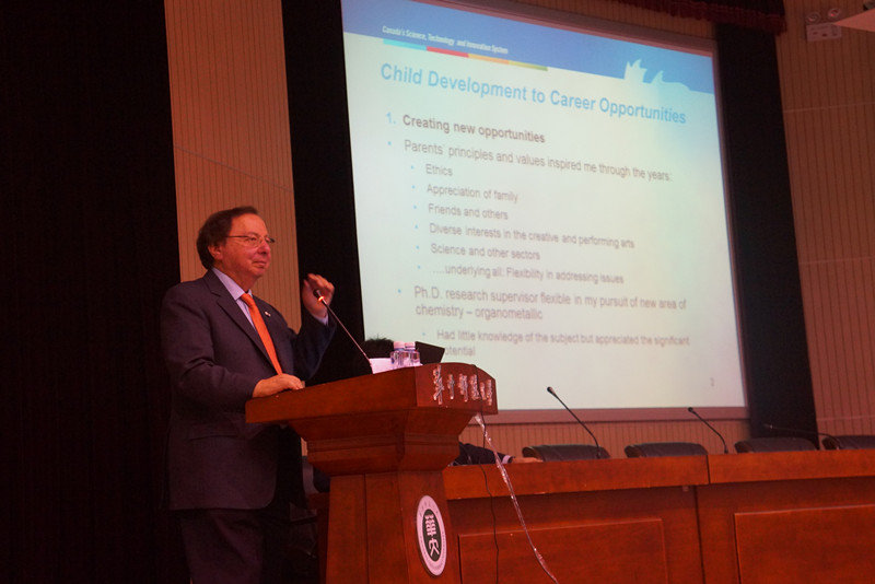 讲座以“领导力、沟通能力及政策参与”为主题,是Howard Alper教授系列讲座中的第二场,Howard Alper教授主要通过分享其自身经历及他人的案例阐述了这一主题。