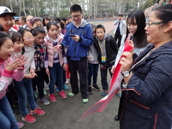 新闻中心消息 通讯员 贾将艳 3月24日下午,化学学院1302团支部在华师附小开展了以“极限记忆,玩中学”为主题的特色团日活动。参与此次团日活动的有1302班王帆、李文静等同学以及华师附小五年级4班全体学生,1302班班导陈建也在现场进行了指导。此次活动旨在让孩子们走出教室,在轻松愉快的环境中学习记忆的方法,同时培养孩子们团队合作的精神。