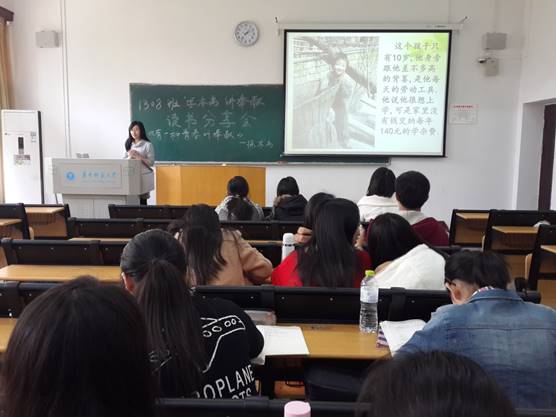 本次活动由班长马平馨担任主持,活动初期向同学们介绍了感动中国人物徐本禹的感人事迹,同时介绍了“本禹们”的支教故事。徐本禹原是华中农业大学的一名毕业生,在暑期前往距武汉千里之外的贵州省西北部乌蒙山区大方县西部的猫场镇进行社会调查。在那里,他走进了岩洞,为孩子们带来了希望,给孩子们讲了许多大山之外的事情。离开山区之后,尽管已获得读研资格,但他毅然放弃决定回去帮助那些孩子。面对一批又一批志愿者们的离去,徐本禹在母校做报告的时候在台上讲到,“我很孤独,很寂寞,内心十分痛苦,有几次在深夜醒来,泪水打湿了枕头,我快坚持不住了……”。班级同学听到这里都陷入了沉默。