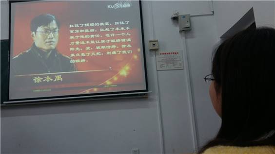 在团支书夏婷婷同学的解说下,同学们集体观看了徐本禹同志于2004年获感动中国十大人物的视频片段。在观看的过程中,不少同学还不时在笔记本上专注地记下一些细节。当被问及对视频中哪一句话印象最深时,彭雅丽同学回答道:“是视频中的一段旁白——‘孩子们看到他们的徐老师回来了,可是他们却不知道他们的徐老师面临的是怎么样的选择。’因为徐本禹的家庭并不富有,他本可以选择更好的路、更舒服的未来,但他却毅然放弃读研,选择回到大山里支教这一条别人看来“不现实”的路,这让我不得不佩服。”