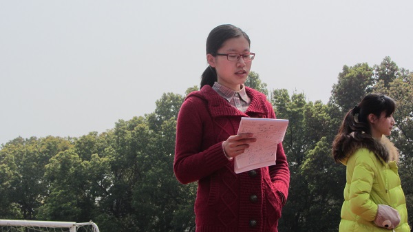 交流会由1307班班长陆文婷主持。大家围在一起,在温暖的阳光中沐浴奉献精神。演讲者通过一个个平凡岗位上不平凡的故事,感染每一个人。