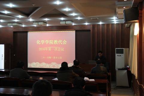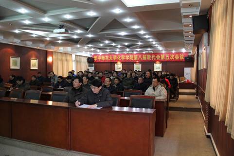 通讯员 刘祖明 2016年1月13日上午,化学学院第八届教职工代表大会第五次会议既2016年第一次全体大会在化学楼五楼报告厅举行。学院全体教职员工参加了本次大会,会议由学院党委副书记范重庆主持。