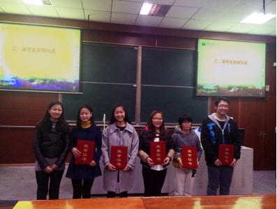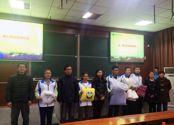 接下来,现场还进行了应用化学奖学金、社会奖学金、树人奖学金、国家助学金和博雅奖学金的发放仪式,由现场嘉宾亲自为获奖的同学们颁奖并合影留恋。随后,曾经受捐的14级和15级学生代表分别上台发言,表达了所有受捐同学共同的感激之情,也表示在此活动中感受到了来自所有老师与同学的温暖。紧接着是爱心物资发放仪式,由在场的所有的领导和老师们上台为15级学生代表颁发爱心物资。