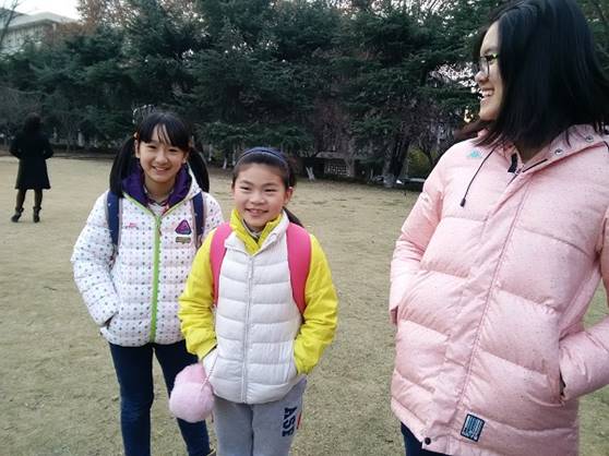 第三个游戏是“转身立定木头人”。许君毅让大家站在广场边缘,而他站在广场中央。当他喊开始的时候,大家一齐向他走来。在大家走的过程中,许君毅会随时转过身来,喊“木头人”,这时,同学们就要保持刚刚的样子,不能动弹,否则就要回到原点,从新开始。最后的三人就要受到惩罚。因为许君毅转身的时刻不确定,大家停下来的样子也千奇百怪。惹得路人也向这边看来。其中就不乏刚放学路过的小朋友。