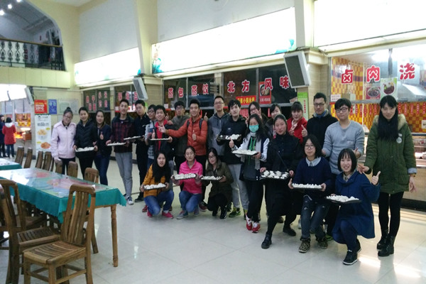 活动开始前,王晨和李嘉欣同学前往菜场为同学们准备食材。考虑到各位同学的口味问题,两位班干部先在网上投票征询了同学们的意见。之后综合意见为同学们购买了白菜、猪肉、蘑菇等丰富的食材。为了准备馅料,齐娟,黄超月等各位女同学都展现出了贤妻良母的一面,在冰冷的自来水下洗菜,切菜,剁馅,最后每个人的双手都被冻得通红。“啪啪啪啪啪......”菜刀和菜板在寝室楼下此起彼伏的声响引来了许多路人和阿姨的围观和赞叹。