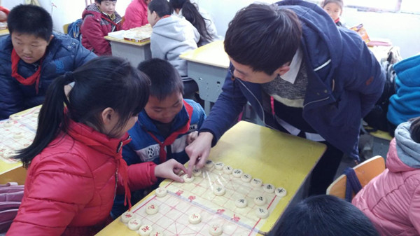 新闻中心消息 记者 蔡振华12月4日下午,化学学院曹琮旺、吴中鹏等5名博雅服务队队员前往张家铺学校为五年级(一)班和(二)班的同学进行了两节课的义教。义教内容为“多彩化学”和“中国象棋”。本次义教活动旨在培养孩子们对科学的兴趣和对象棋的热爱,丰富其学习生活。