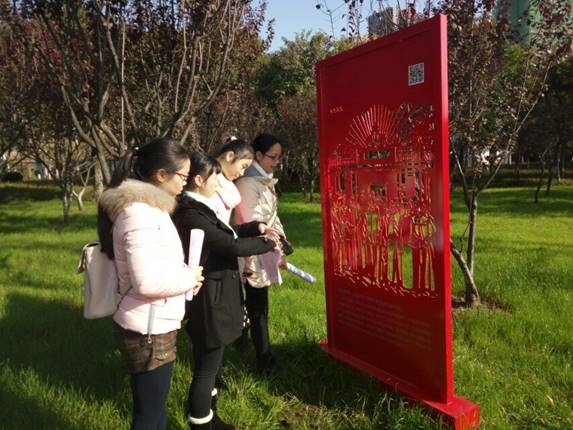 参观完这些雕刻,我们便来到了下一个参观点。在这里我们重温了长征路线,长征从江西瑞金出发,途中困难重重,血战湘江、四渡赤水、飞夺泸定桥、爬雪山、过草地……最后在甘肃会宁胜利会师。我们不仅在书本上学过这些血泪史,今天还听两位坐在旁边的老人栩栩如生地讲着这些故事,同学们的内心受到极大的震撼。党员李文静说:“当年奋力抗战的红军们毅力真的太顽强了,如果没有党的正确领导,如果没有长征的胜利,如果没有老一辈的奋斗,我们怎么会有今天的幸福生活?我们应该好好学习长征精神,作为国家的年轻力量我们应该为祖国的建设贡献一份力量。”