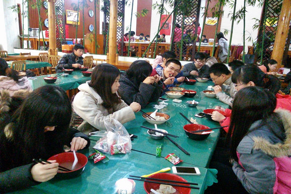 比赛结束后,活动全体参与者移动到东二食堂二楼。时间将近晚餐,同学们坐在一起,一边吃着热腾腾的饺子,一边和周围的同学谈论这两天学习十八届五中全会的感想与体会。许多同学都很关注我国的义务教育普及到高中这一政策,他们普遍认为这是国家教育事业的进步。1306团支部姜旭感慨道:“以前高中的时候还想什么时候高中也能变成义务教育,想不到现在就要实现了,我们国家的教育发展速度真的挺快的。”在餐桌上,部分同学也谈论起了二胎政策,他们认为二胎政策全面放开生育,但由于现在社会二胎对于一般家庭的负担,很多家庭可能更倾向于不生二胎。