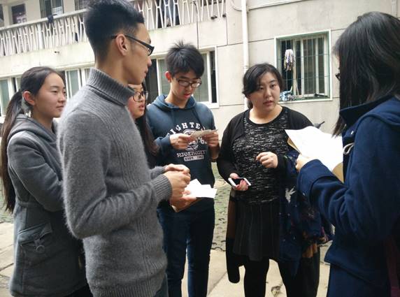 上午8:30,活动在化学学院团委学生会主席林芳婧的主持下准时开始。简短的赛程介绍和嘉宾欢迎仪式后,杨军书记上台致辞。他谈到同学们在学习之余应该多参加户外活动,体验游戏中学习的乐趣。致辞后,随着“比赛开始”的声音,第一批队员们消失在集合点,向着自己的第一个目的地奔跑而去。校团委学生副书记王倩倩老师也即兴参与了比赛,成为第十八组的一员,他们一起找到健身器材、光未然、申通点等多个关卡,并运用上团体的智慧回答各个问题。第三小组则是在队长袁香一同学的安排下各显所长,让细心的女生通过照片确定地点,而让体力更胜一筹的男生负责快速赶到目的地,全队通过手机一起回答问题。不到一个小时,各个小队便陆续到达终点站——博雅广场松树下,并在贴心的后勤处领取了免费的水和校园明信片。
