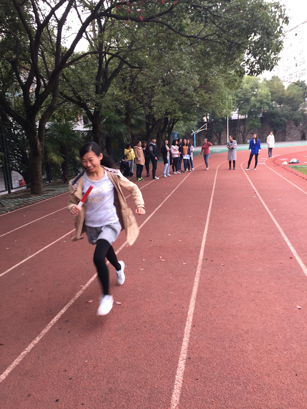 贴膏药游戏在欢笑声中结束后,开始了新一轮的精彩比赛。四人一组,每两个人分别站在直跑道两头,两组共同进行接力比赛。本轮游戏的趣味性体现在:将你画我猜的元素融入其中,在竞赛者跑过直道后,下一位接力的同学,需要猜对该同学所比划的运动名称,才可继续向前奔跑。各位同学紧张的指手画脚,奋力的奔跑,成为了高职体育场上一道美丽的风景线。